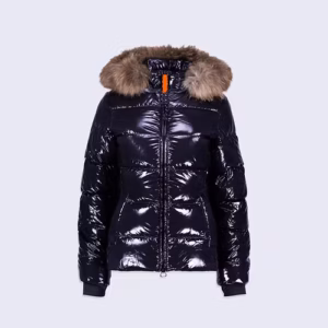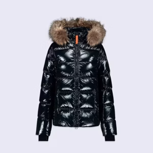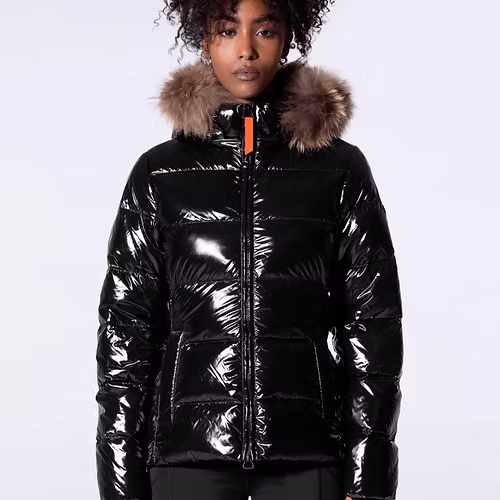 OLGA BRIGHT est une doudoune cintrée et ajustée aux épaules confectionnée en nylon. Le bas de manche est muni d’une finition ajustée avec passe-pousse. Le bas de vêtement est ajustable grâce à un cordon élastiqué. La doudoune dispose d’une capuche amovible avec fourrure véritable, amovible elle aussi. L’ouverture milieu devant se fait par un zip rehaussé d’une tirette en gros grain contrasté. Deux poches passepoilées sont insérées dans la découpe princesse. Le patch en silicone ton sur ton iconique de la marque est apposé sur l’épaule.