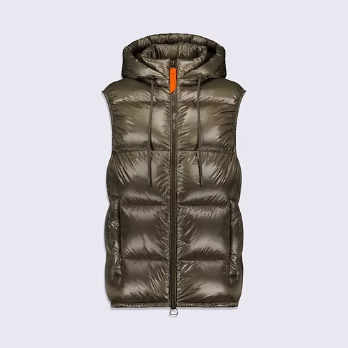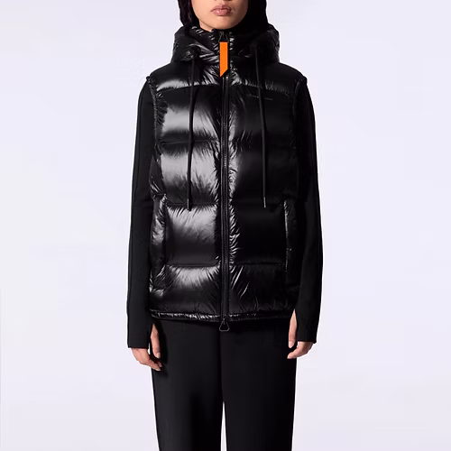 La doudoune sans manches droite unisexe à larges boudins CESAR est confectionnée en nylon brillant. La capuche amovible est dotée de cordons de serrage avec stopper en silicone et œillets gravés à l’effigie de la marque. Le bas de vêtement est élastiqué. L’ouverture zippée avec puller contrasté et deux poches incrustées complètent la pièce. Le logo est imprimé en ton sur ton au niveau de la poitrine.